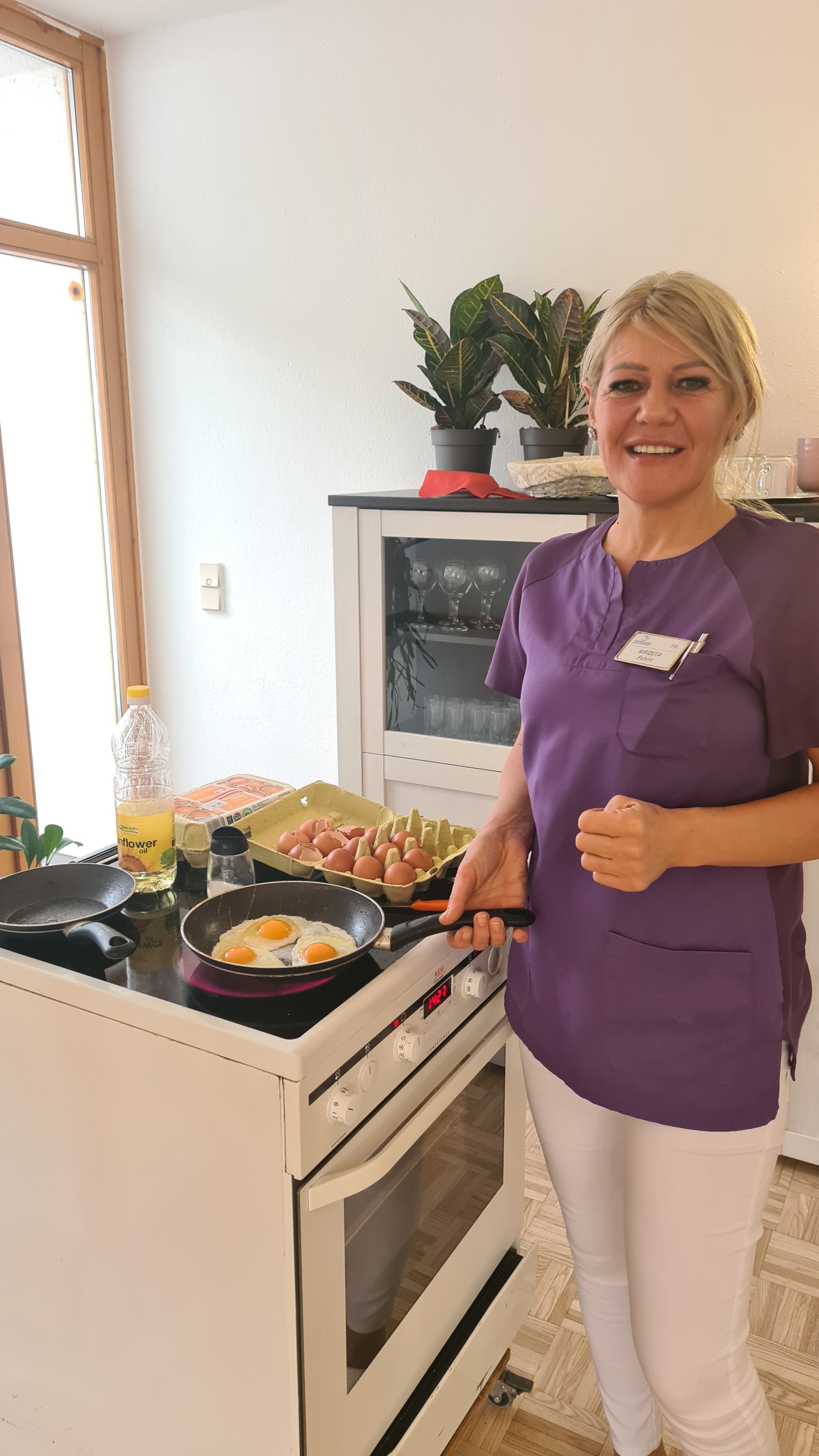 Die Bewohner des SeneCura Sozialzentrums St. Veit an der Glan können sich jede Woche auf das exklusive „Promifrühstück“ freuen, bei dem sie von den zwei Animateurinnen Maria und Mirzeta bekocht und verwöhnt werden. Bei romantischem Kerzenschein erfüllen sie die verschiedensten Wünsche nach frischem Obst und Gemüse, Wurst- und Käsesorten und diversen Eierspeisen nach Wahl der Bewohner:innen. Dieses besondere Highlight trägt maßgeblich dazu bei, unseren Seniorinnen und Senioren unvergessliche Momente zu bescheren.