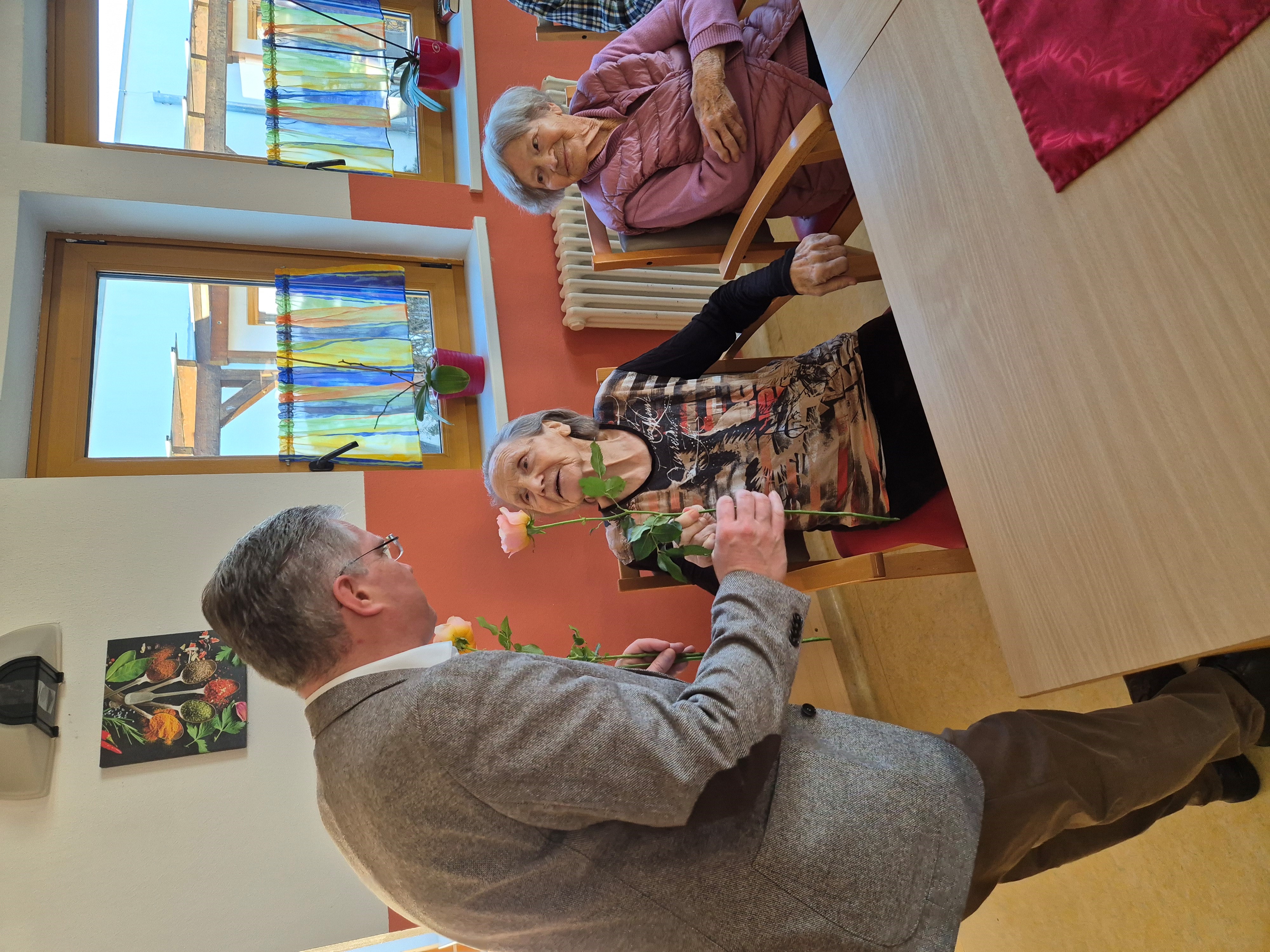 Der Bürgermeister, als er seine Rosen verteilte und die Bewohner:innen glücklich machte.