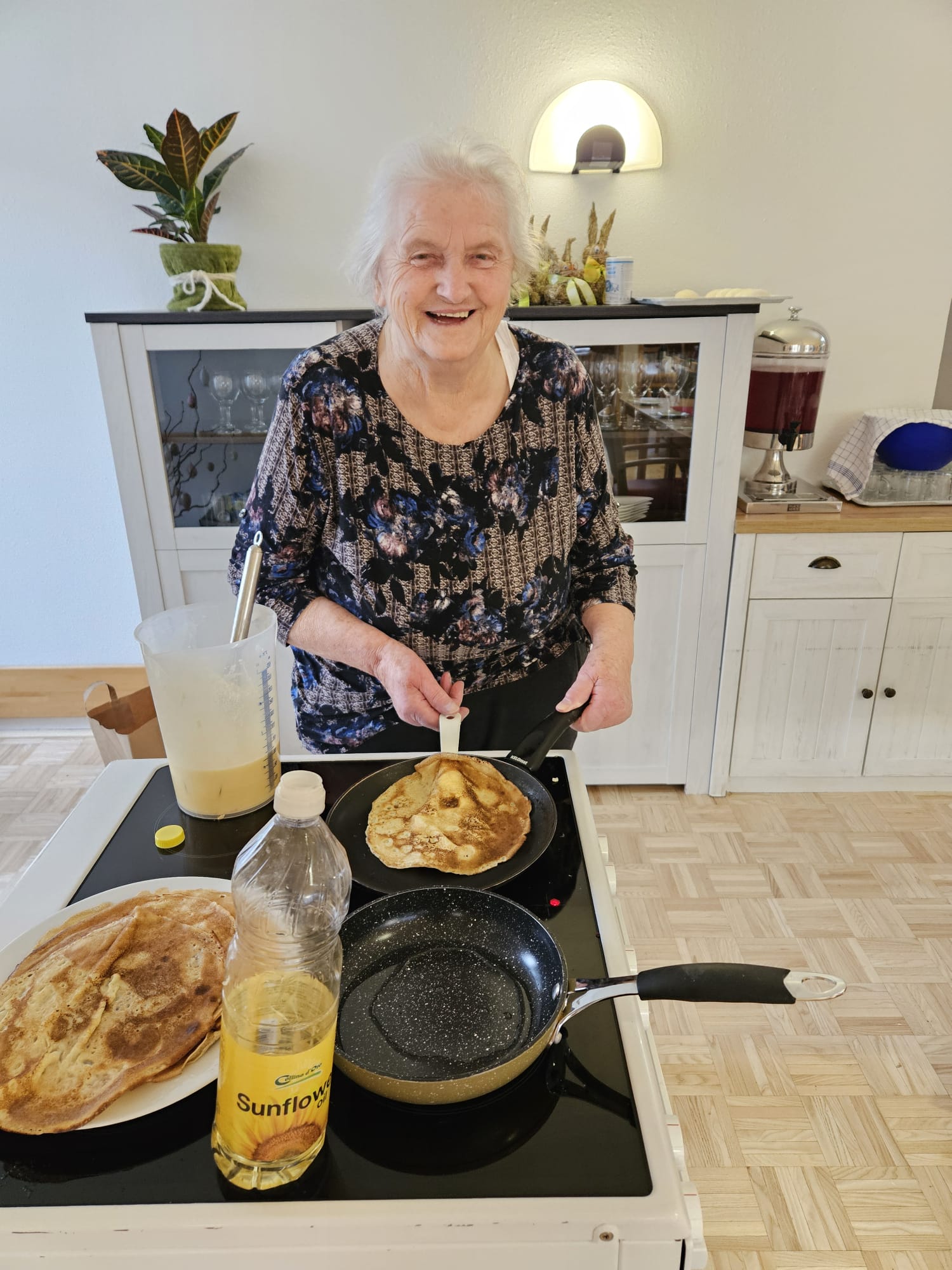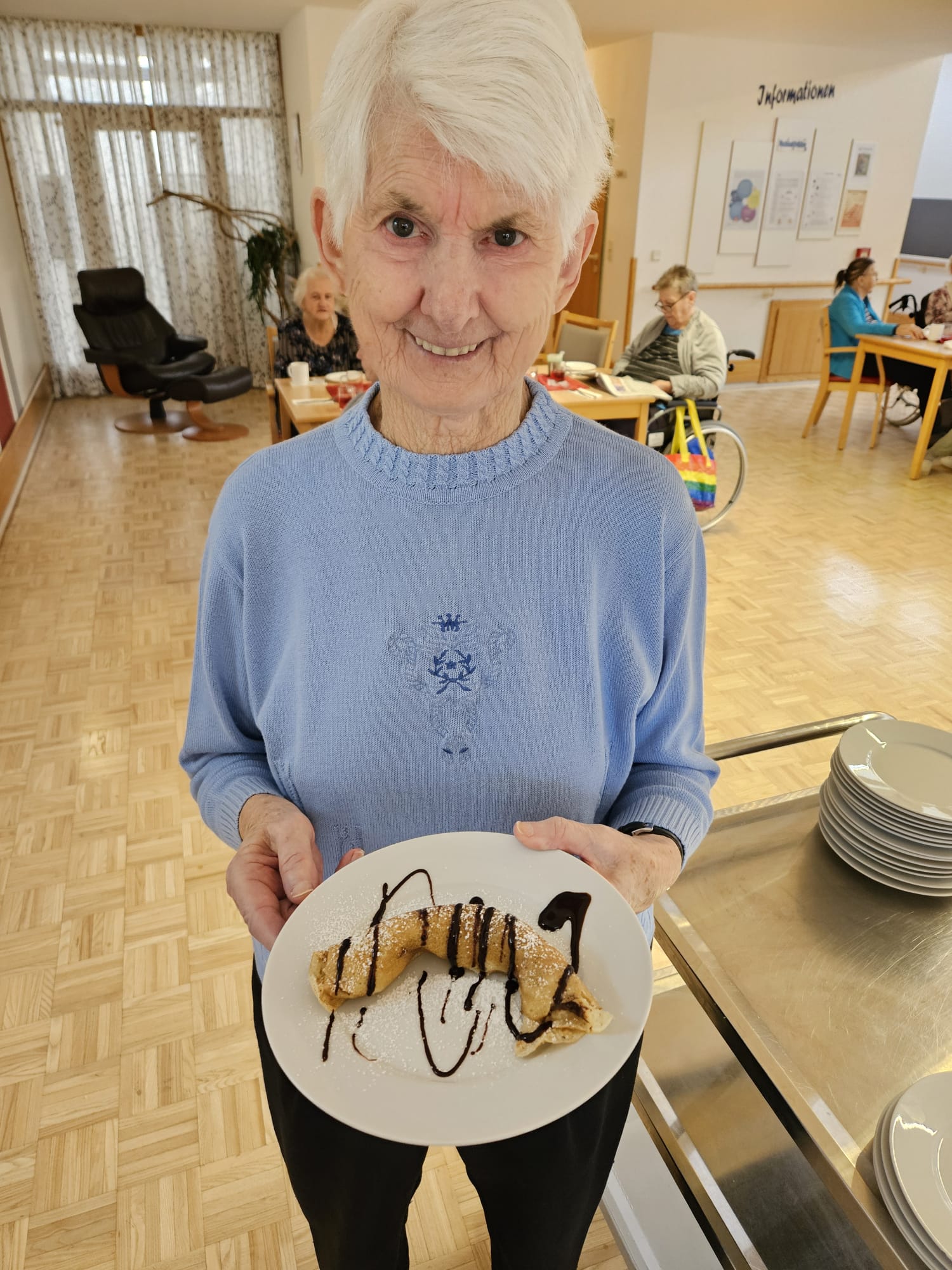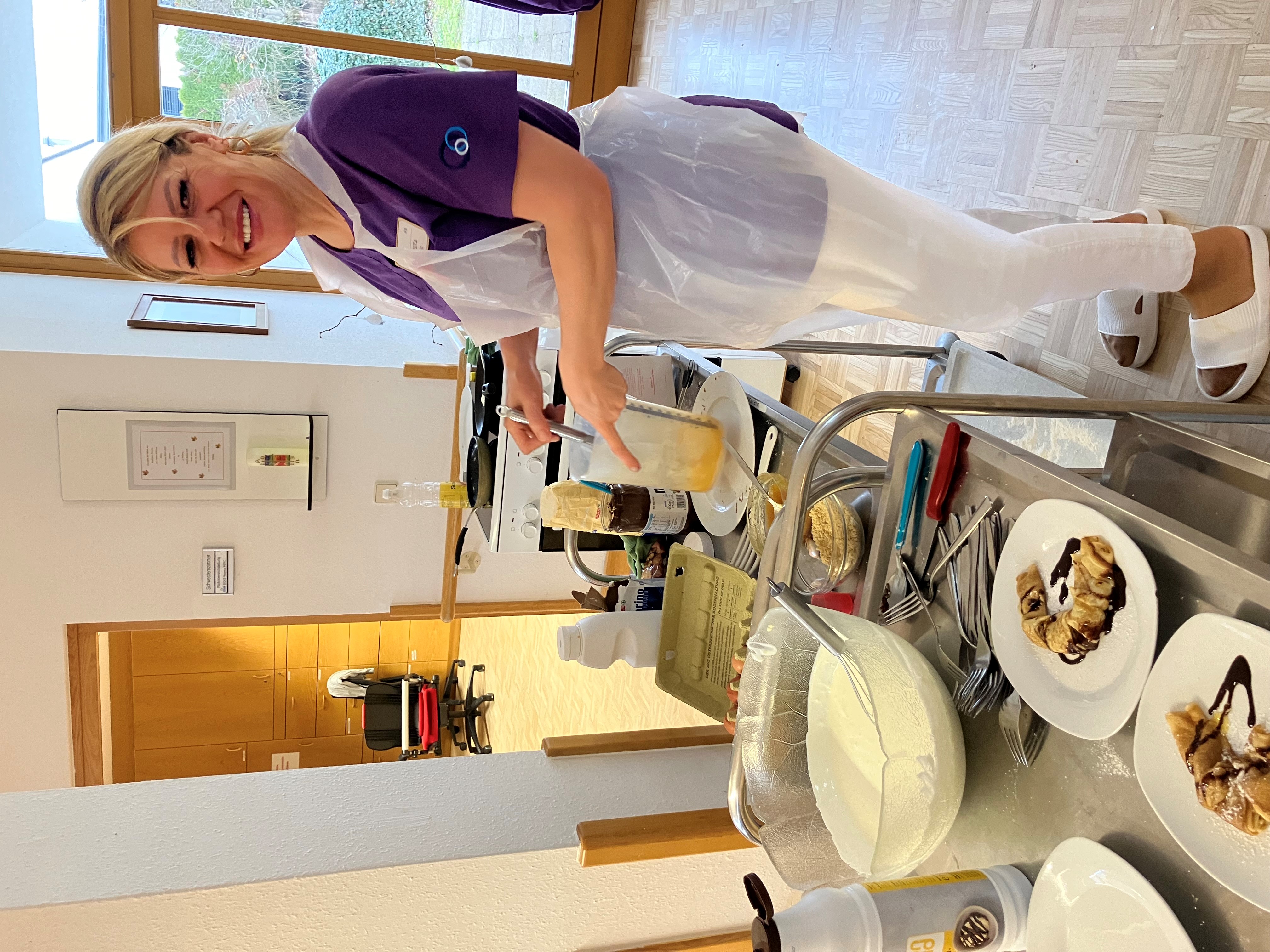 Im SeneCura Pflegezentrum St. Veit an der Glan wurde kürzlich eine kleine Palatschinken-Party veranstaltet. Als kleine Abwechslung hat die Animateurin Mirzeta Fehric gemeinsam mit den Bewohner:innen Palatschinken für alle gemacht und nach Lust und Laune befüllt. Egal, ob Nutella, Früchte oder Marmelade – es blieben keine Wünsche offen und die Bewohner:innen genossen das süße Frühstück in vollen Zügen.
