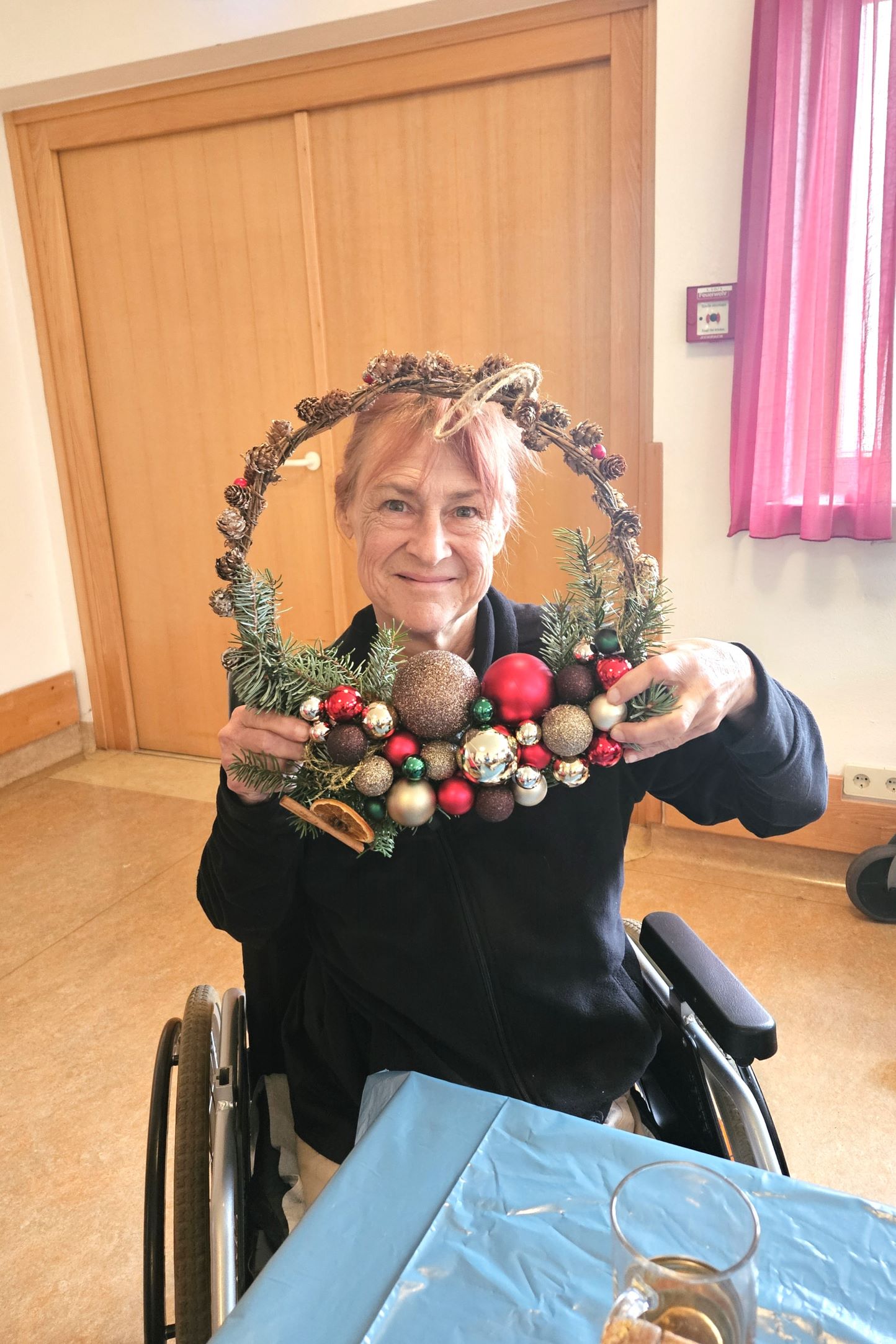 Gemeinsam mit dem engagierten Betreuer:innenteam und mit viel Herz wurde der Bastel-Nachmittag ein voller Erfolg. Neben den schönen Ergebnissen zählte vor allem das Miteinander. „Unsere Bewohner:innen schätzen solche gemeinsamen Aktivitäten sehr. Es stärkt das Gemeinschaftsgefühl und bringt viel Freude in den Alltag,“ betont Hausleiter Reinhard Brosmann. „Umso schöner ist es dann, wenn dabei auch noch so schöne Dekorationen entstehen, mit denen wir das ganze Haus weihnachtlich schmücken können“. Weihnachtlichen Melodien im Hintergrund sowie Punsch und Lebkuchen rundeten den gelungenen Nachmittag ab. So wurde das Haus nicht nur optisch durch die liebevoll gestalteten Werke, sondern auch durch den herrlichen Duft von Tannengrün in ein kleines Weihnachtsparadies verwandelt.