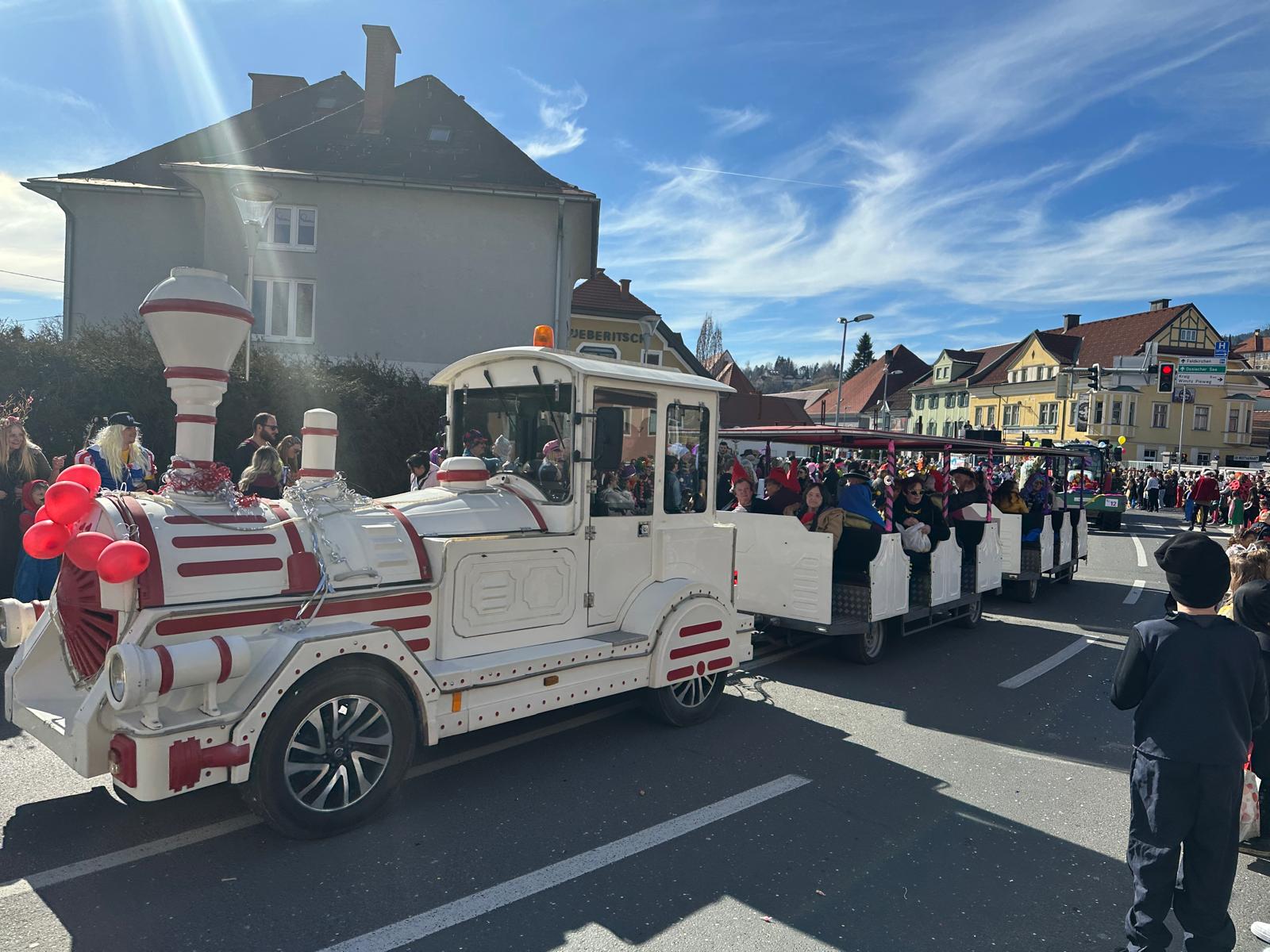 Am Faschingsdienstag haben die Bewohner:innen des SeneCura St. Veit am traditionellen St. Veiter Faschingsumzug mit dem Bummelzug teilgenommen. Bei traumhaftem Wetter säumten ca. 5.000 Besucher:innen die Wege entlang der Innenstadt. Stimmungsvolle Partymusik sorgte für ausgelassene Stimmung. Natürlich durften auch flaumige Faschingskrapfen bei einem solchen Spektakel nicht fehlen. Am Nachmittag ging die Party im Speisesaal des Hauses weiter. Stimmungsvolle Musik animierte die Bewohner:innen zum Mitsingen und Mittanzen und die Polonaise führte durch das gesamte Haus.