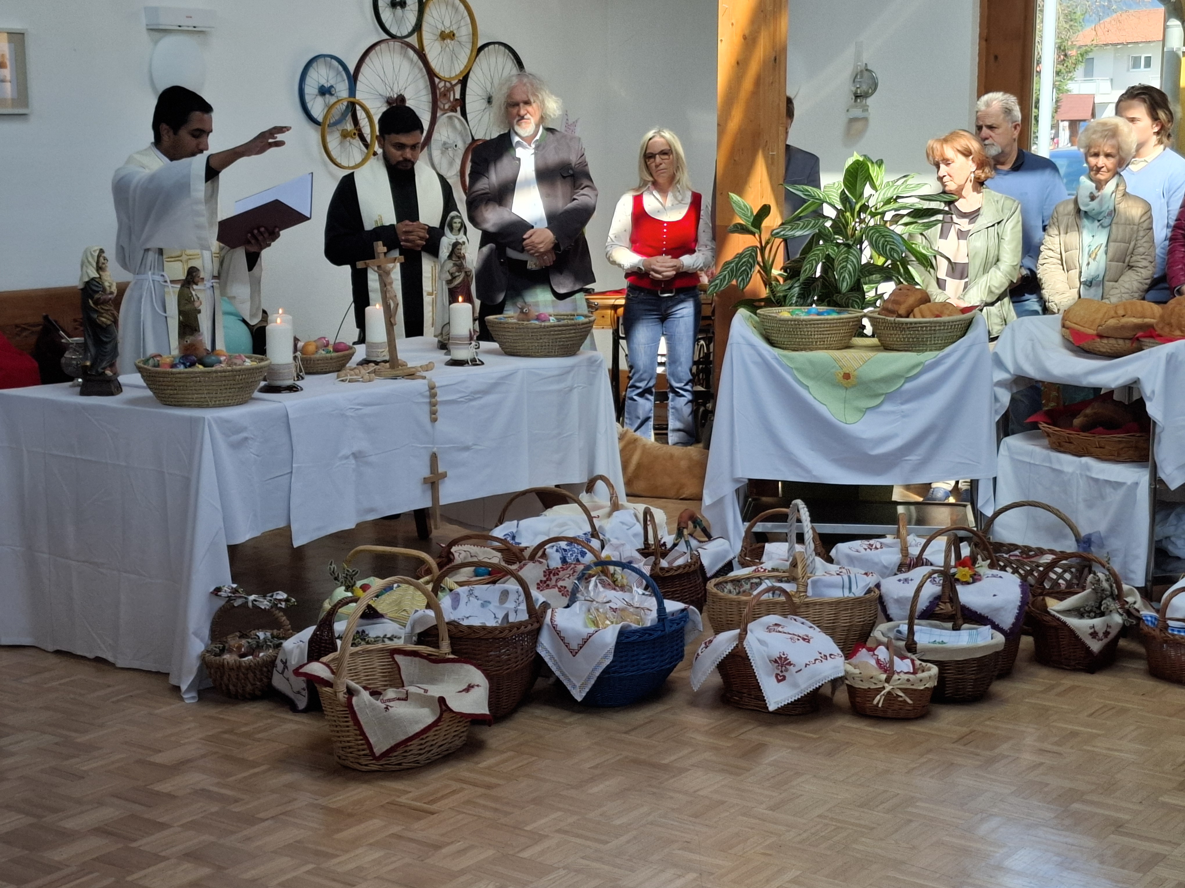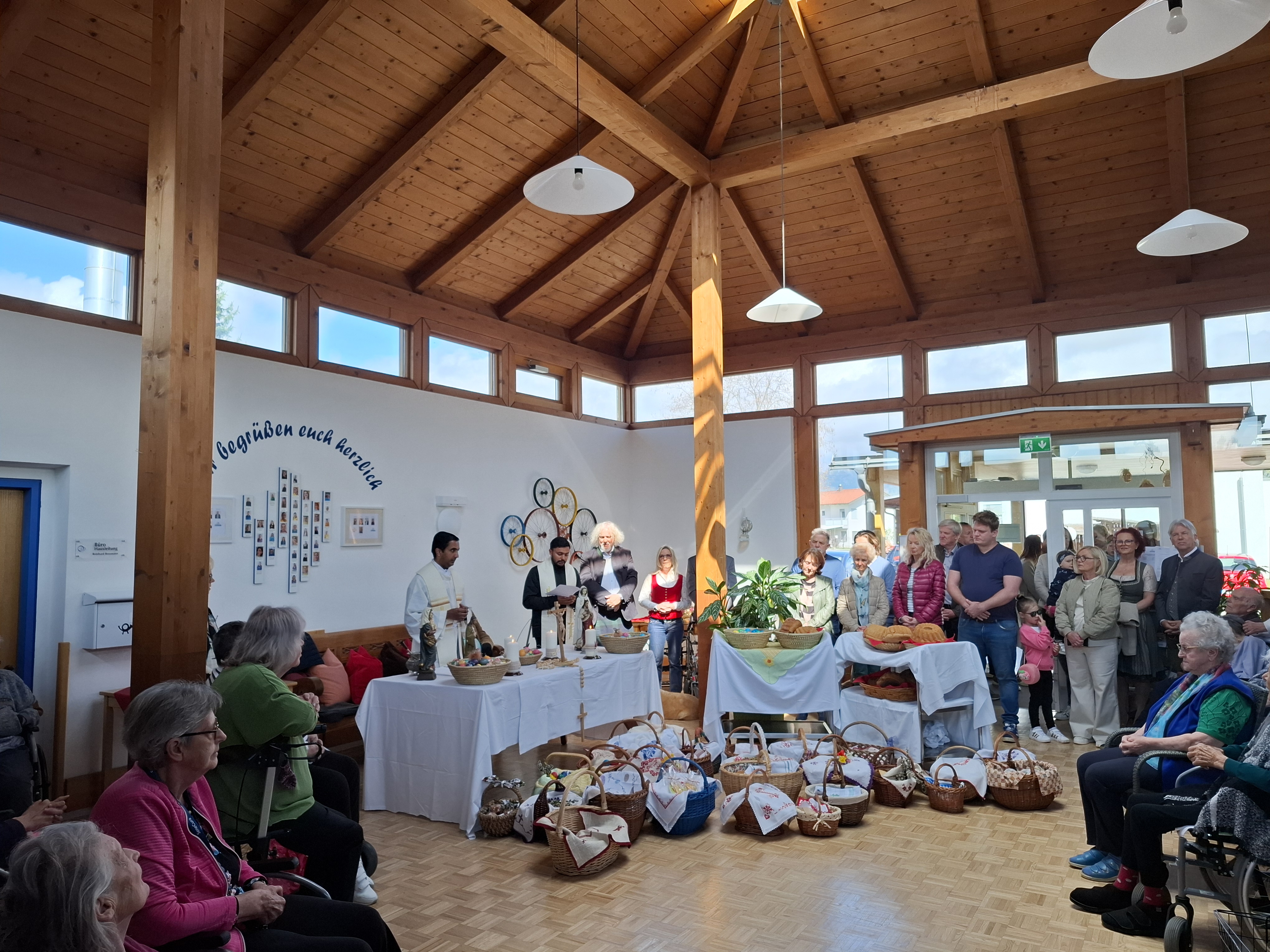 Am Karsamstag fand im SeneCura Sozialzentrum St. Veit die traditionelle Fleischweihe statt. Die Bewohnerinnen und Bewohner sowie Angehörigen, Besucher:innen und Mitarbeiter:innen brachten ihre schön geschmückten Osterkörbe, die mit Osterfleisch – dem Schinken, Eiern, Brot, Kren und Reindling gefüllt waren, zur Weihe. Das Brauchtum der Fleischweihe ist eines der Highlights der Osterzeit, auf das sich alle freuen.
