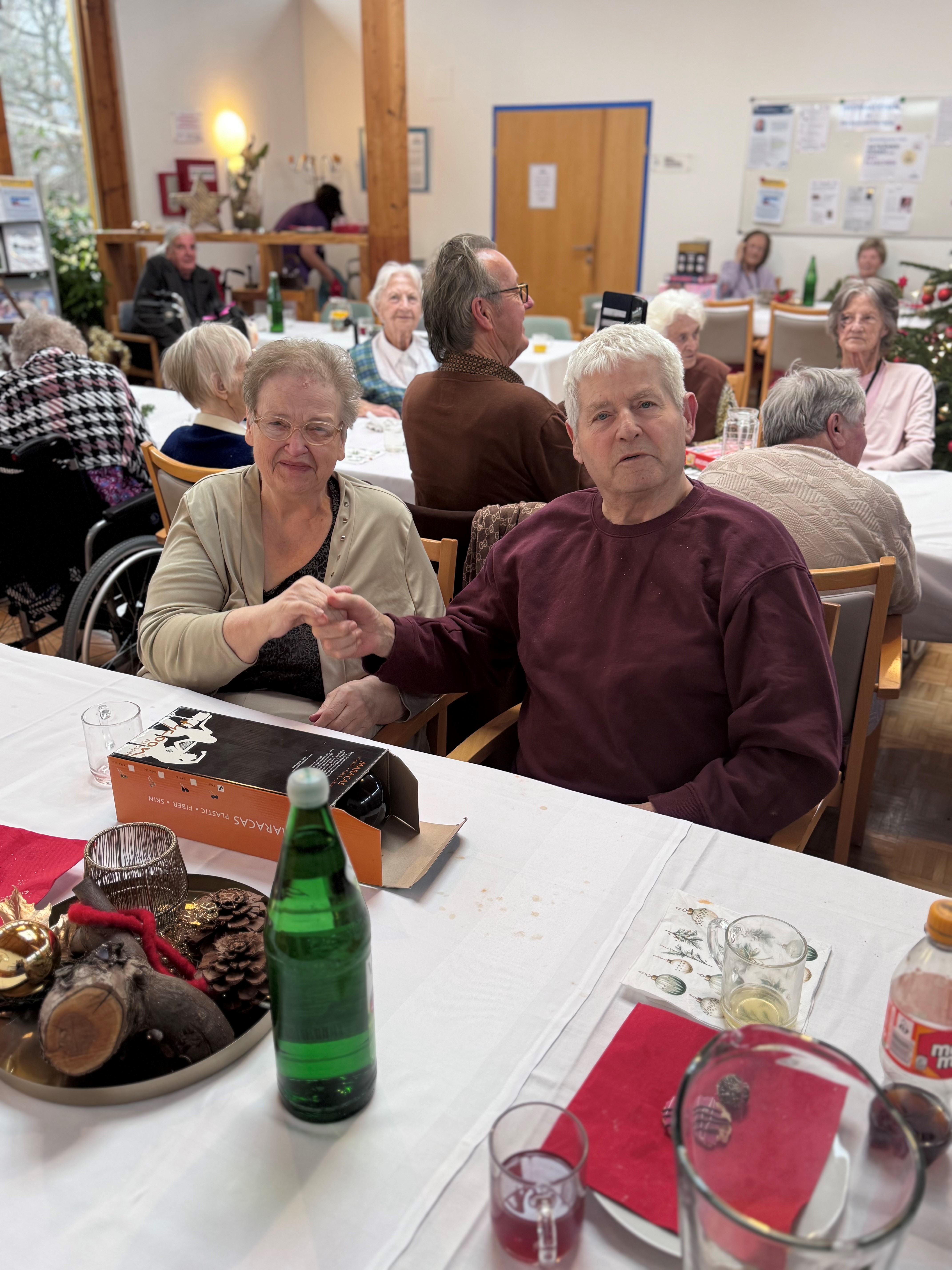 Bei Keksen und Weihnachtspunsch sorgte Birgit Pless mit einer gelungenen Mischung aus klassischen und modernen Weihnachtsliedern für musikalische Unterhaltung. Bewohner:innen, Mitarbeiter:innen und Gäste wurden zum Mitsingen eingeladen, einige bewiesen sogar ihr Talent in gemeinsamen Duetten.